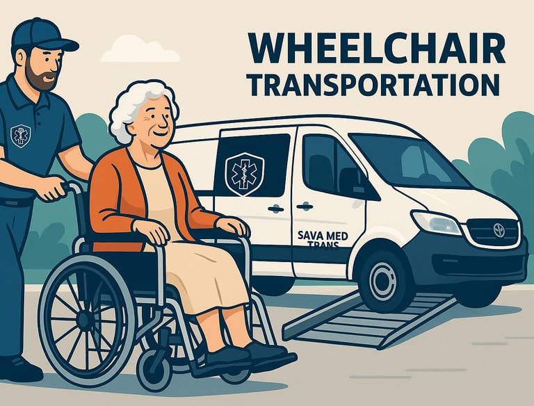 Sava Med Trans is a dedicated non-emergency medical transportation company in California, specializing in safe and reliable transportation services for individuals requiring wheelchair assistance.